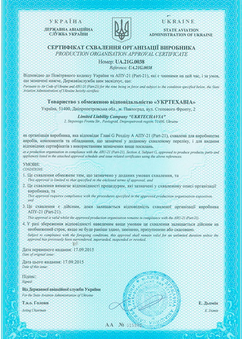 UkrTehAvia公司ISO9001證書(shū)