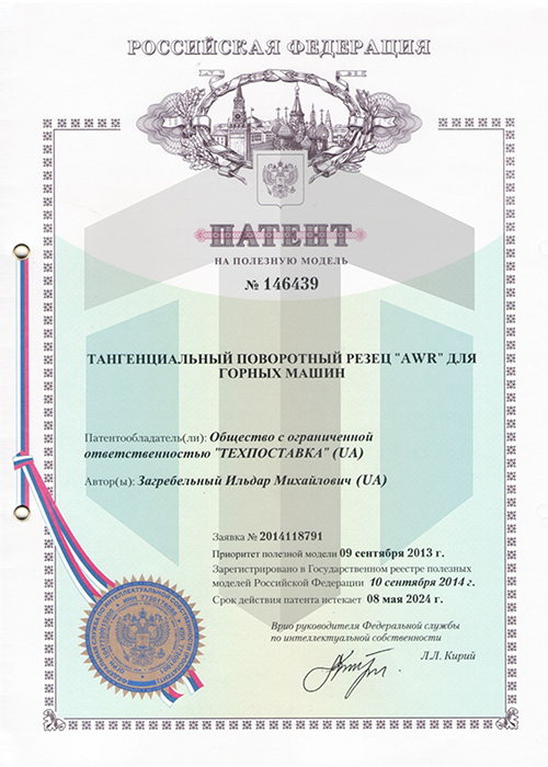 AWR系列截齒實(shí)用新型專(zhuān)利證書(shū)